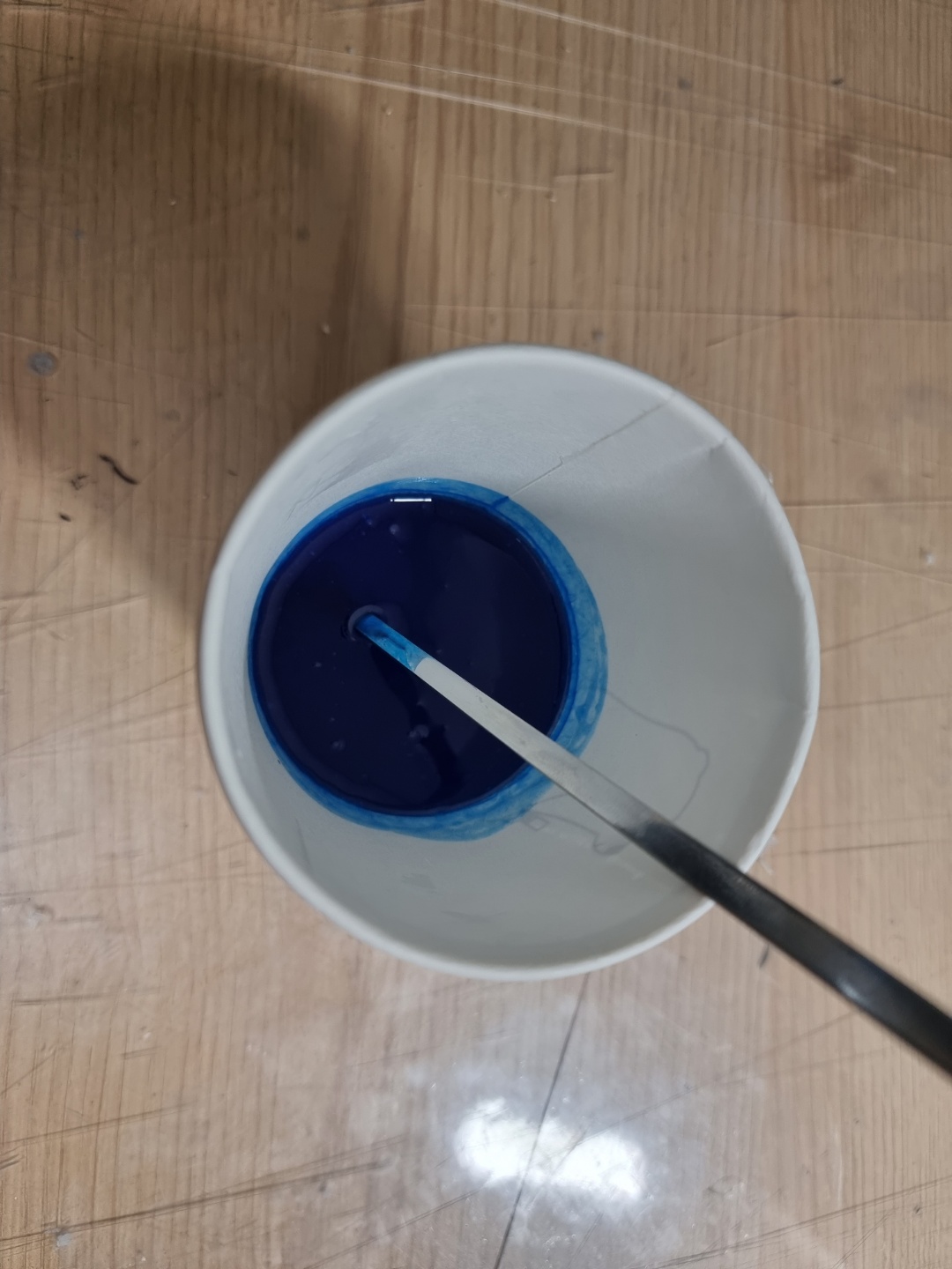 클리어 블루 에나멜이 굉장히 오래묵은 도료라 완전 뭉치고 굳어있던걸 신너를 넣고 열심히 저어 사용중인데..
