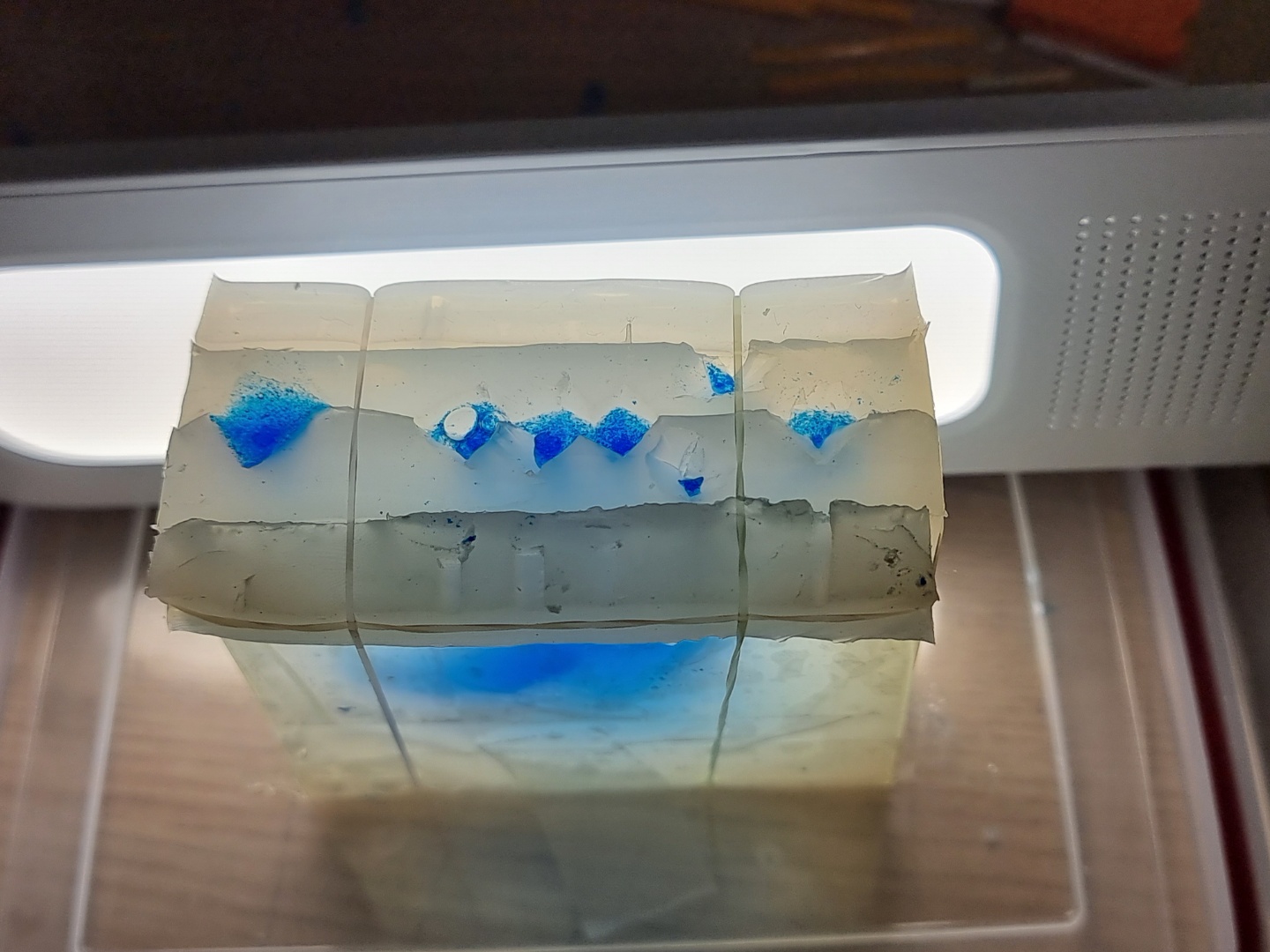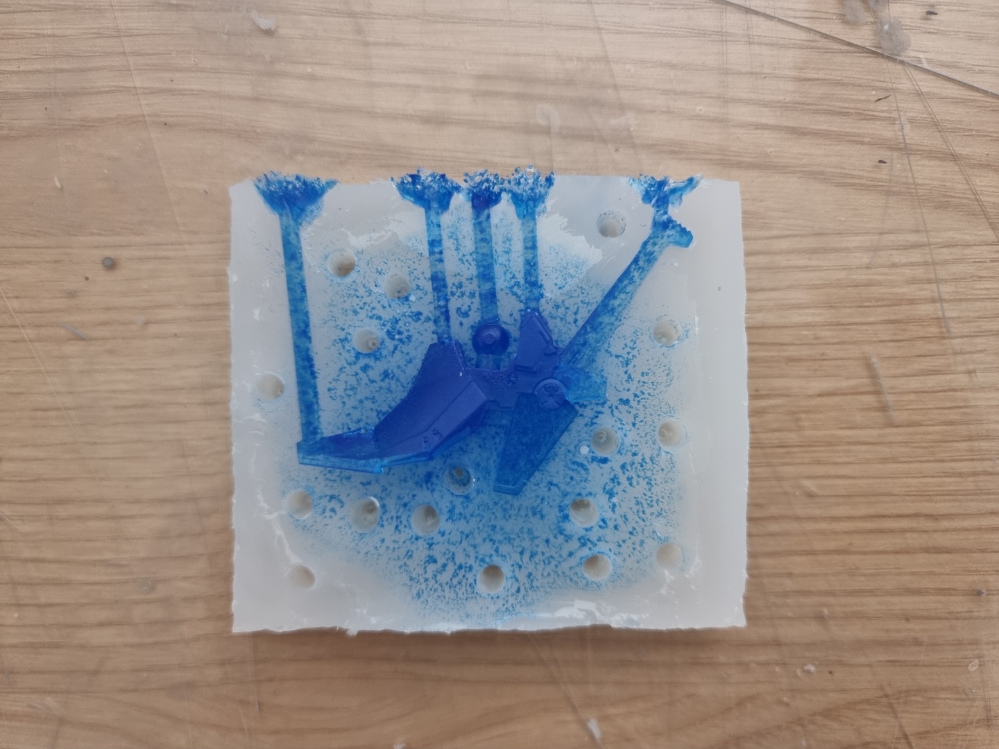 주물을 다 채운 후 탈포기에서 약 5회 정도 탈포를 진행했고, 완전 경화를 기다렸다가 실리콘 형틀을 열어보니 아래와 같은 모습이 맞이해줍니다.