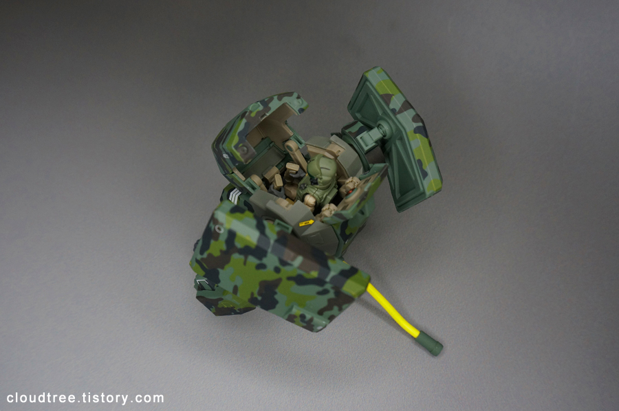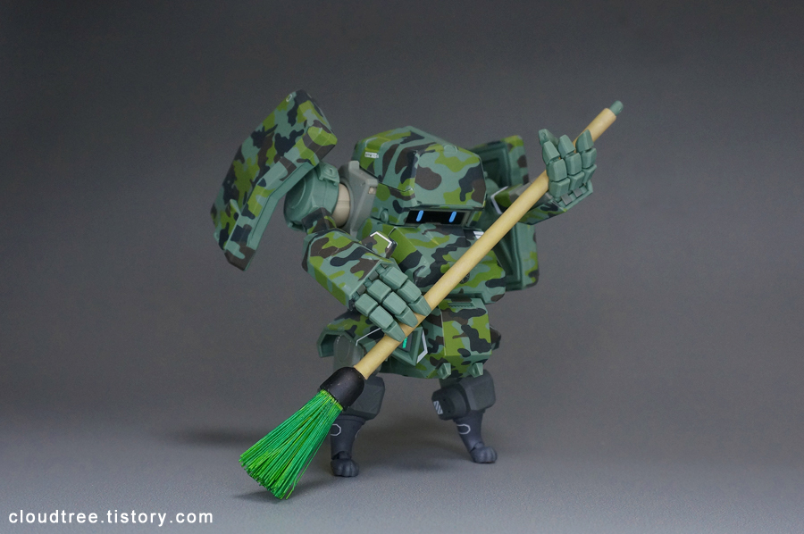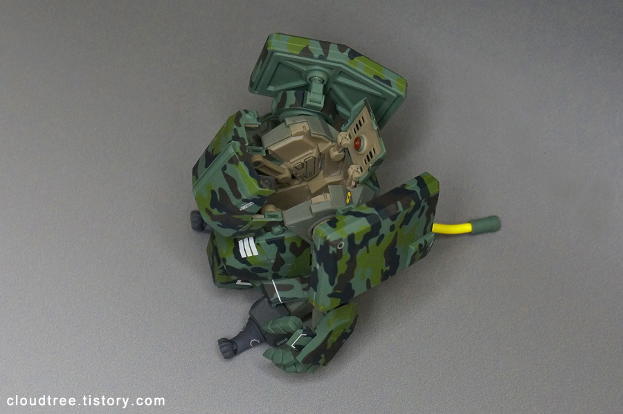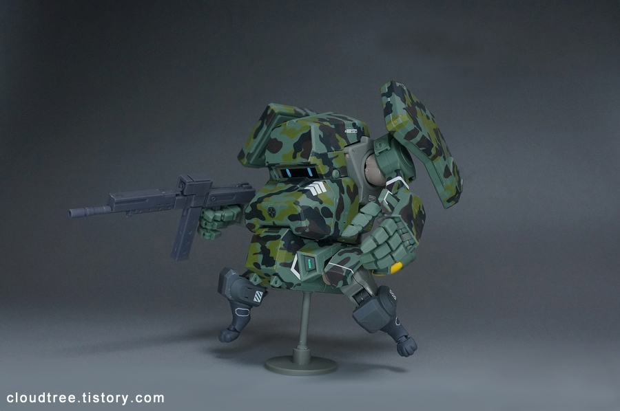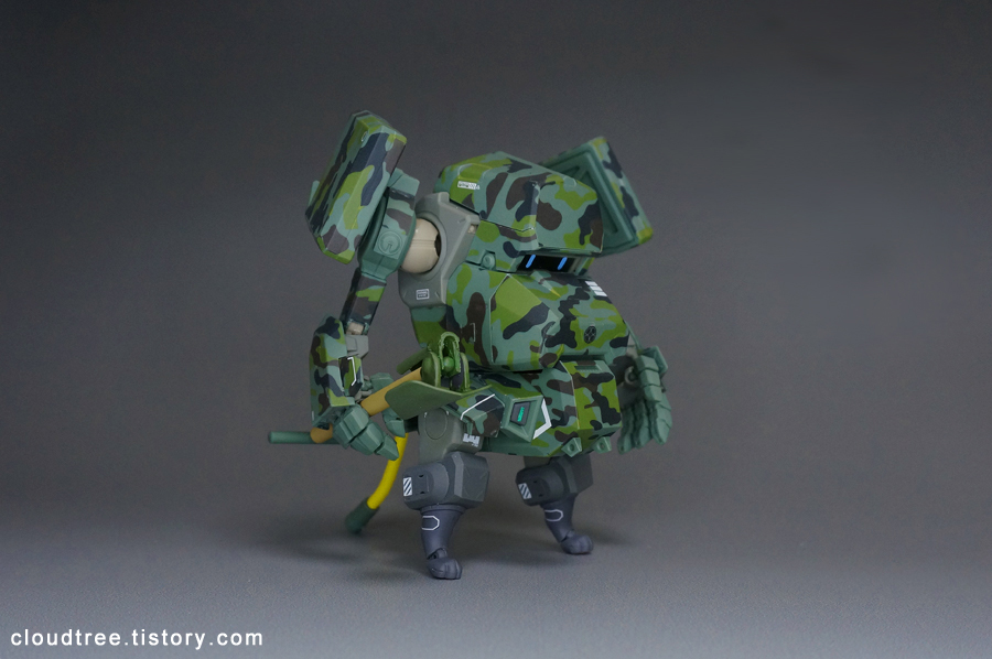 개구리 위장무늬 일체는 자작 데칼을 만들어 입혀주었으며, K-07A3 반달곰 기체의 부분도색 및 추가 악세사리는 아크릴 붓도색을 해주었고, 메탈릭 스티커를 재단하여 약간 사용했습니다.