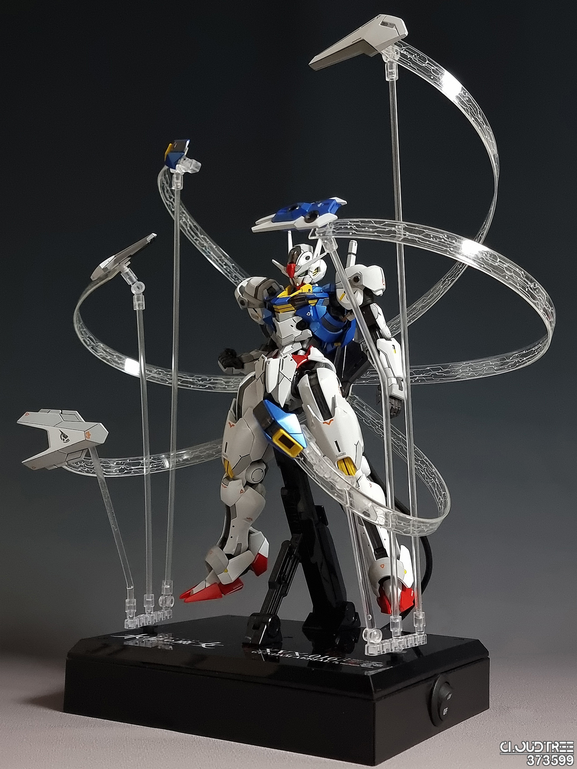 USB-C타입 케이블을 사용하여 외부전원을 연결하면 5개의 버니어, 2개의 비트 웨폰에 불이 들어오며, 콕핏 전면부가 무지개빛으로 점등되고 포스의 빛무리가 움직입니다.