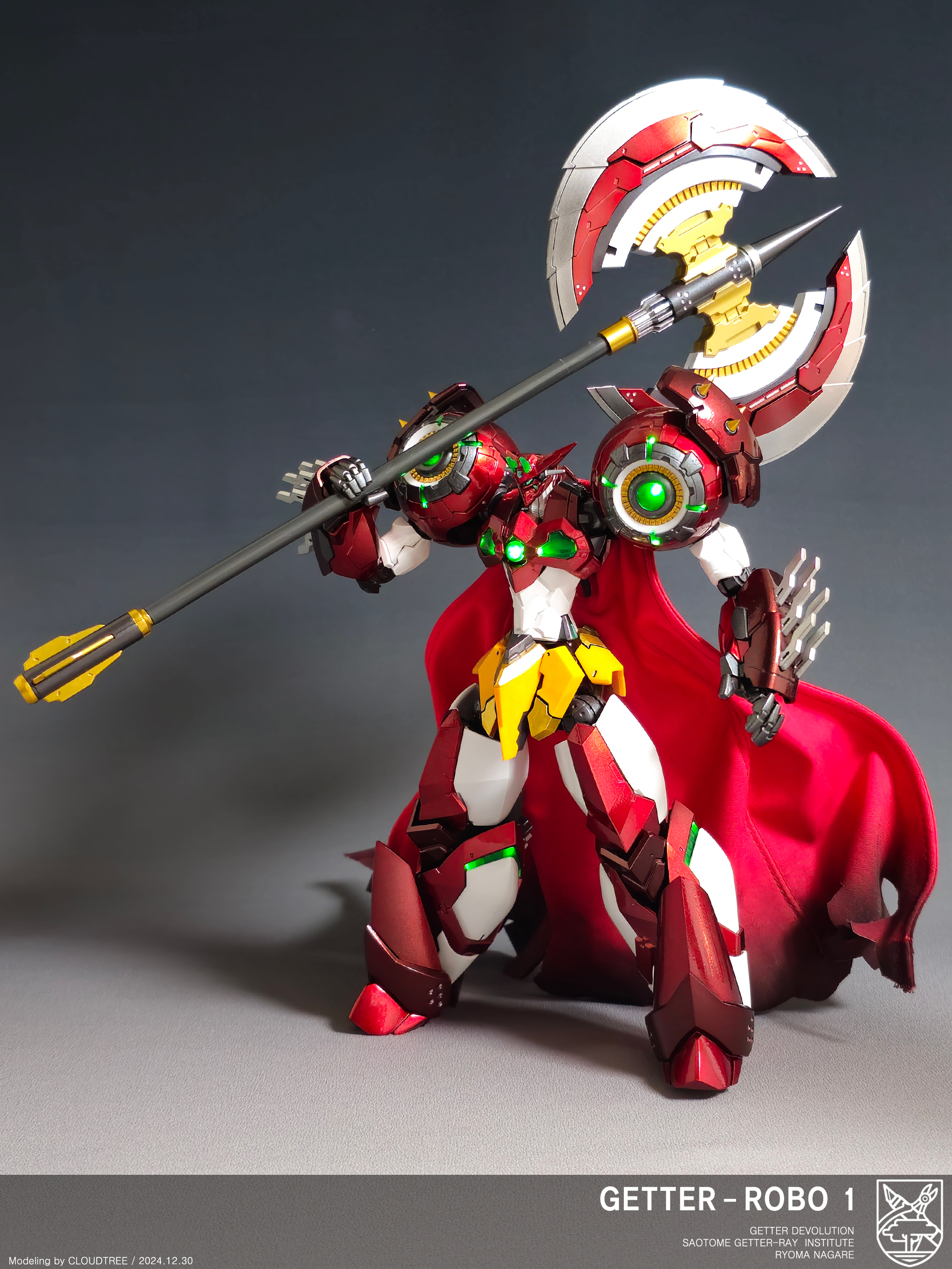 또, 겟타 데볼루션 특유의 발이 없는 뭉툭한 다리가 취향에 맞지않아 오리지널 요소로 발 파츠를 직접 조형하여 네오디뮴 자석으로 탈착할 수 있도록 추가했습니다.
