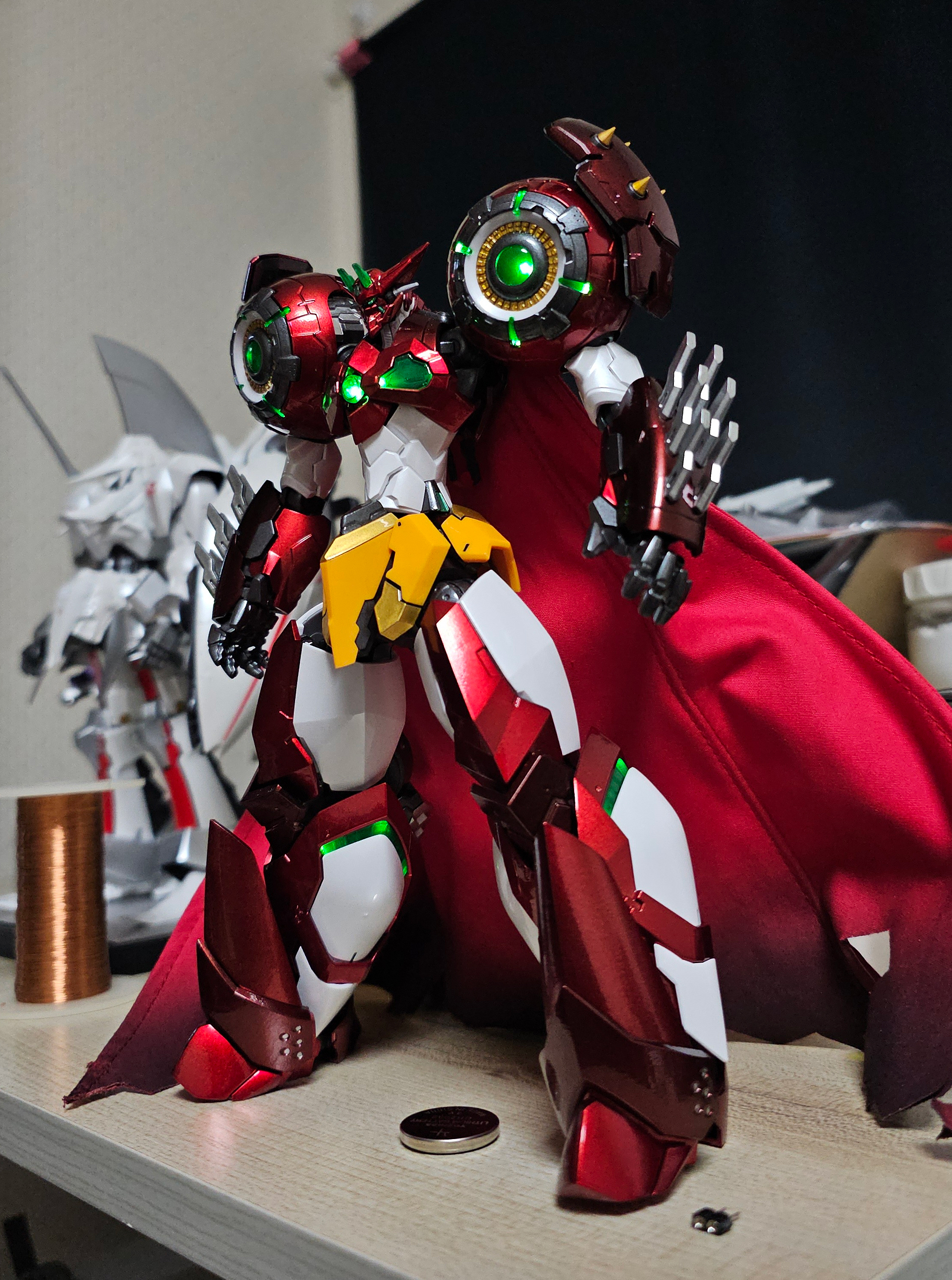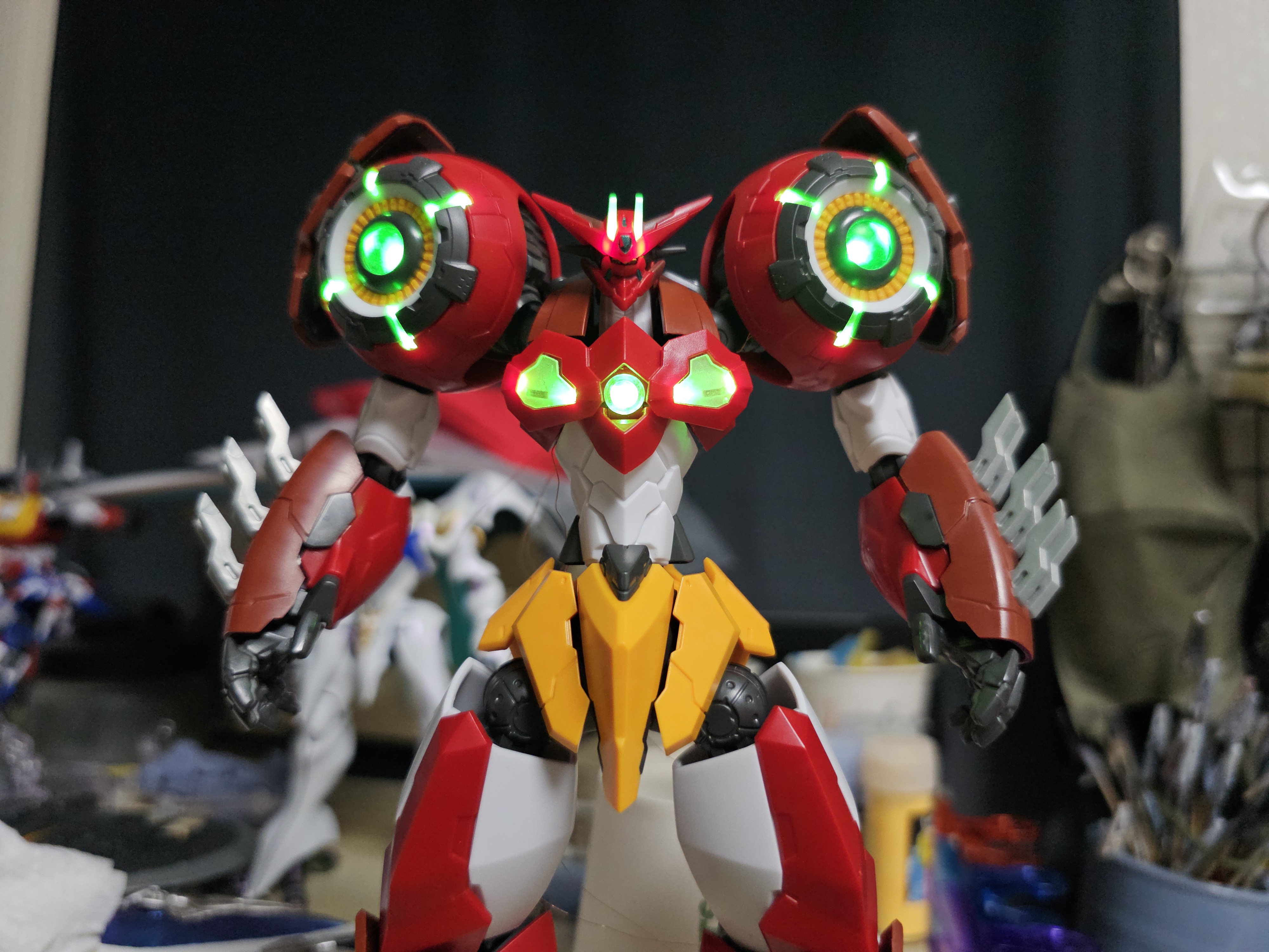 - 가슴의 겟타리액터+겟타빔 부위 LED 작업 및 전원선 단일화 완료