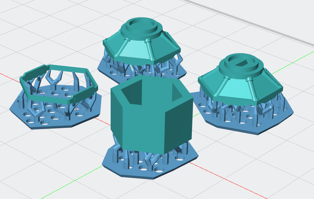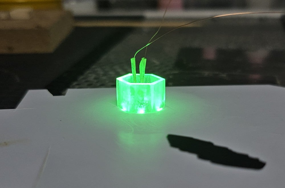 당연히 녹색으로 빛나야 하므로 LED 작업을 위해 중앙 육각기둥은 투명 UV레진으로 복제를 시도.