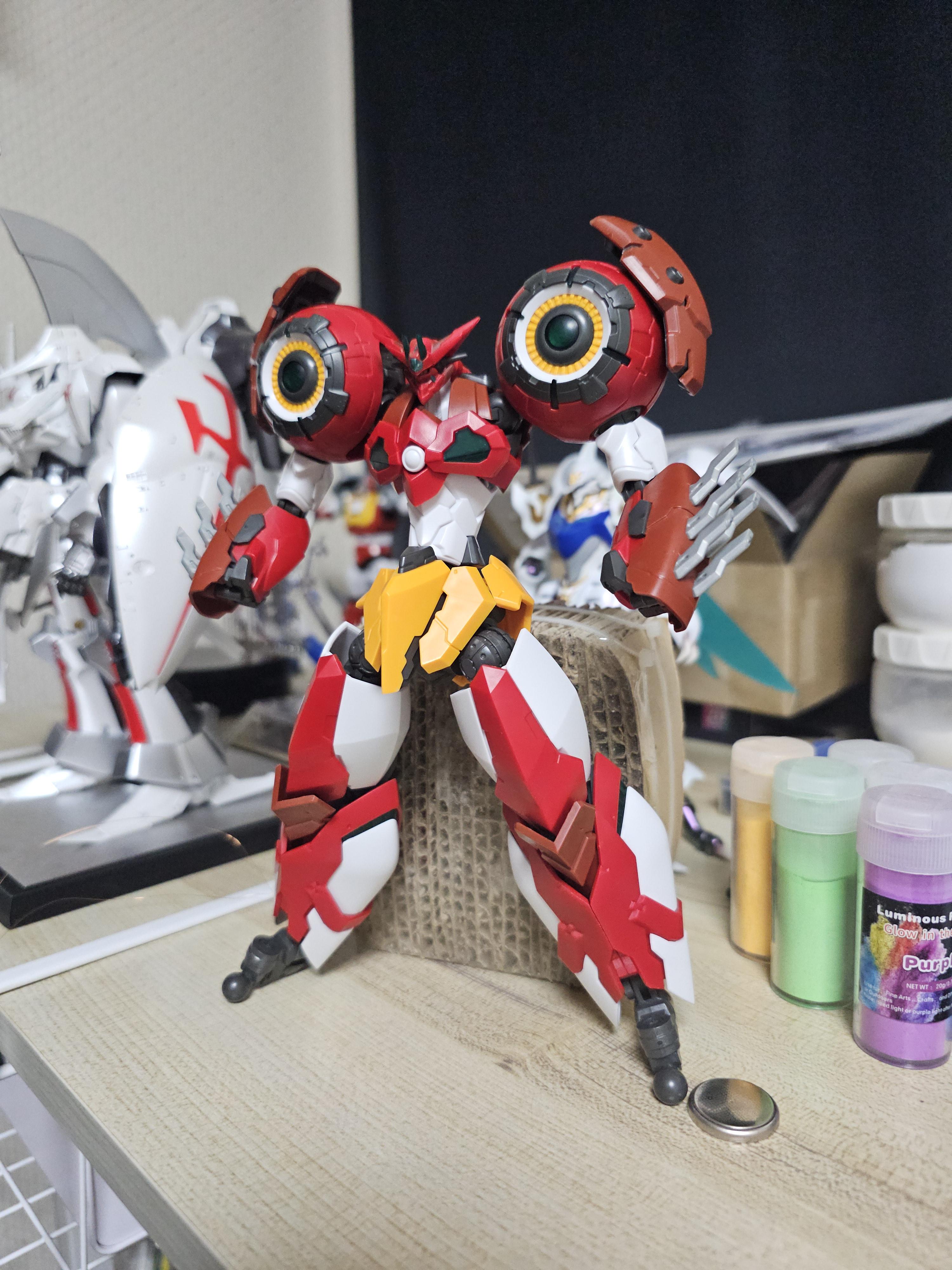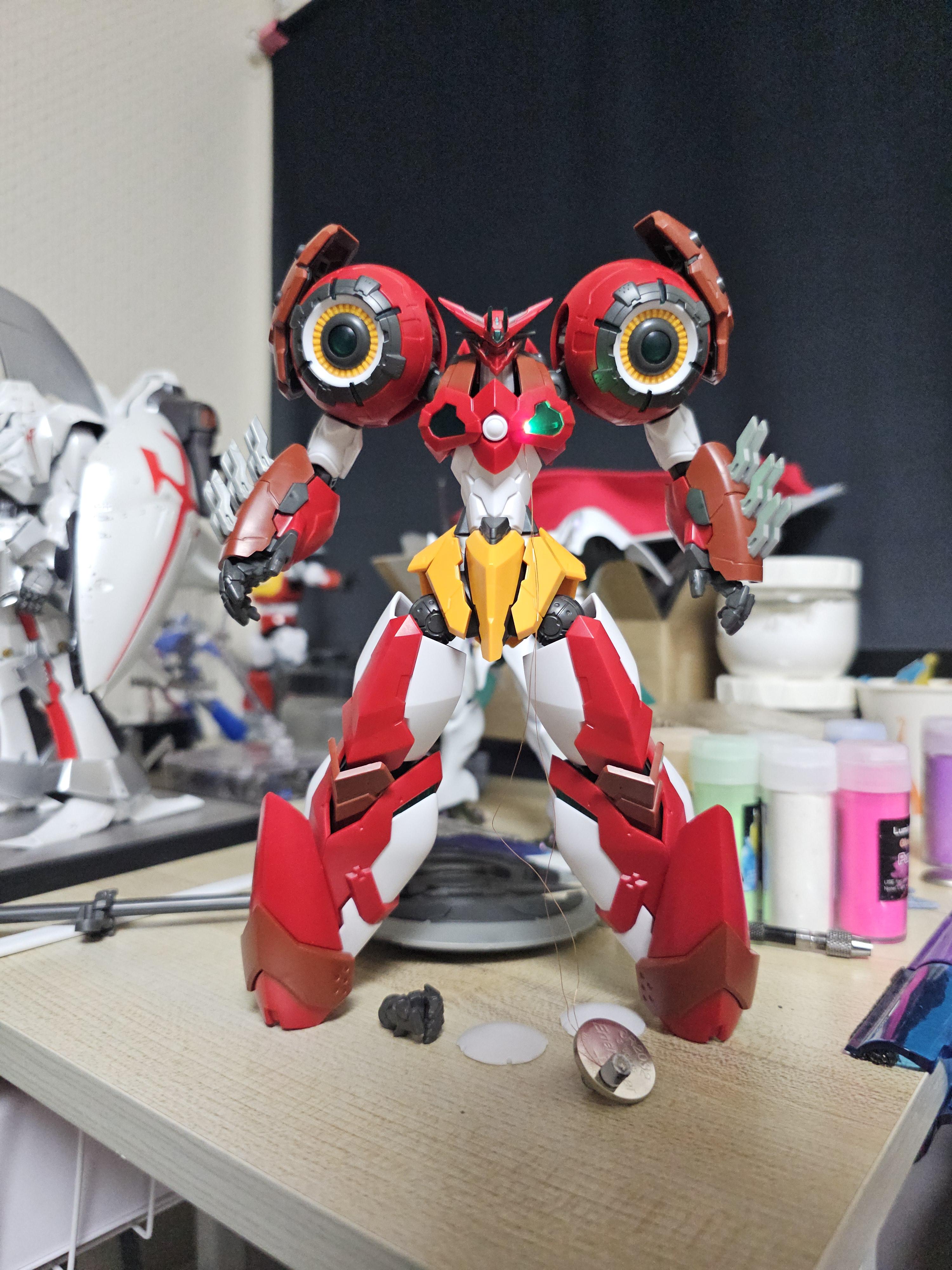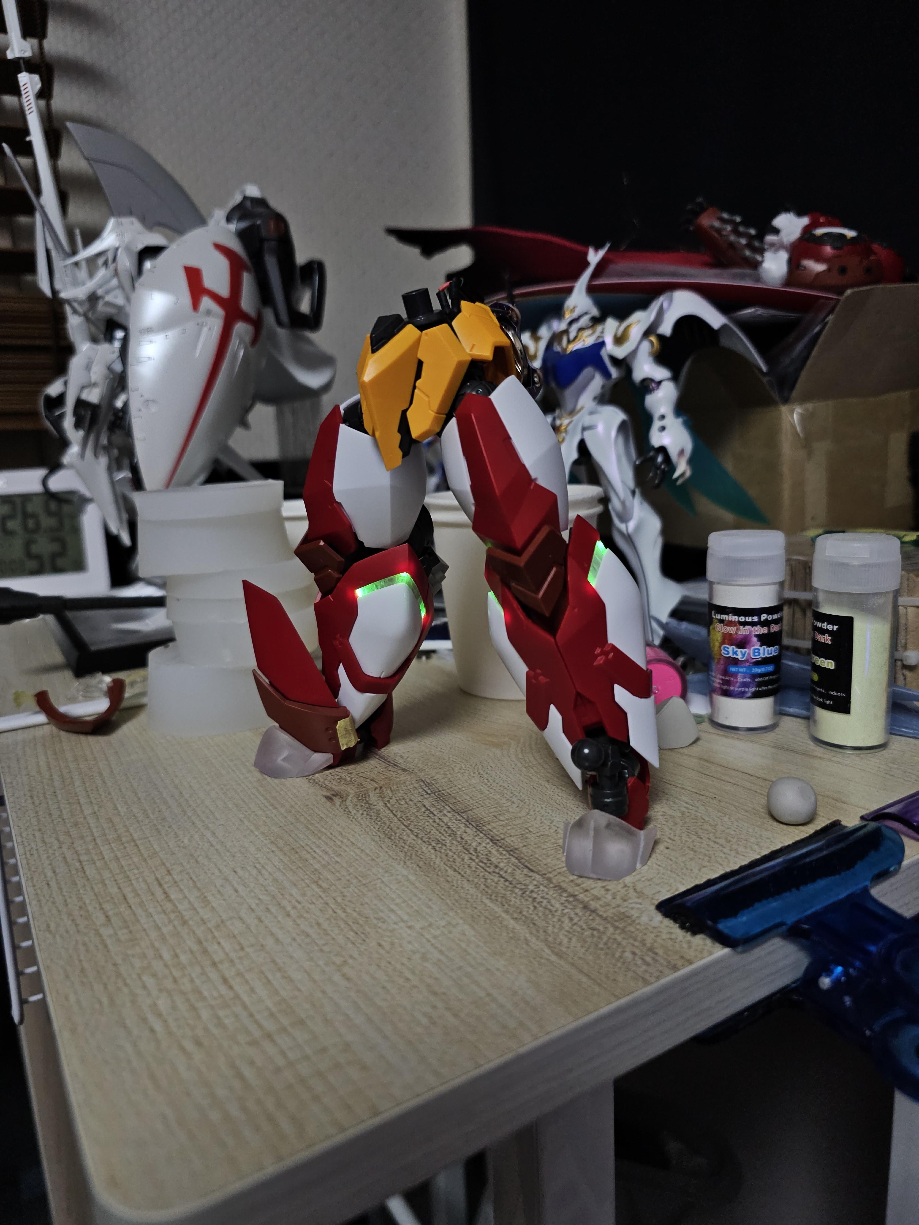 다리 하박의 좌우로 들어갈 겟타로 LED 테스트. 5개를 밖을까 하다가 광량이 지나쳐 버닝이 발생할까 우려되어 3개만 적용