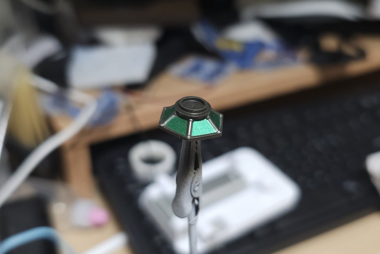 LED 위치 상 육각기둥 위아래는 빛이 잘 닿지 않으므로 그냥 메탈릭 실버 + 클리어 그린 오버코팅으로 도색